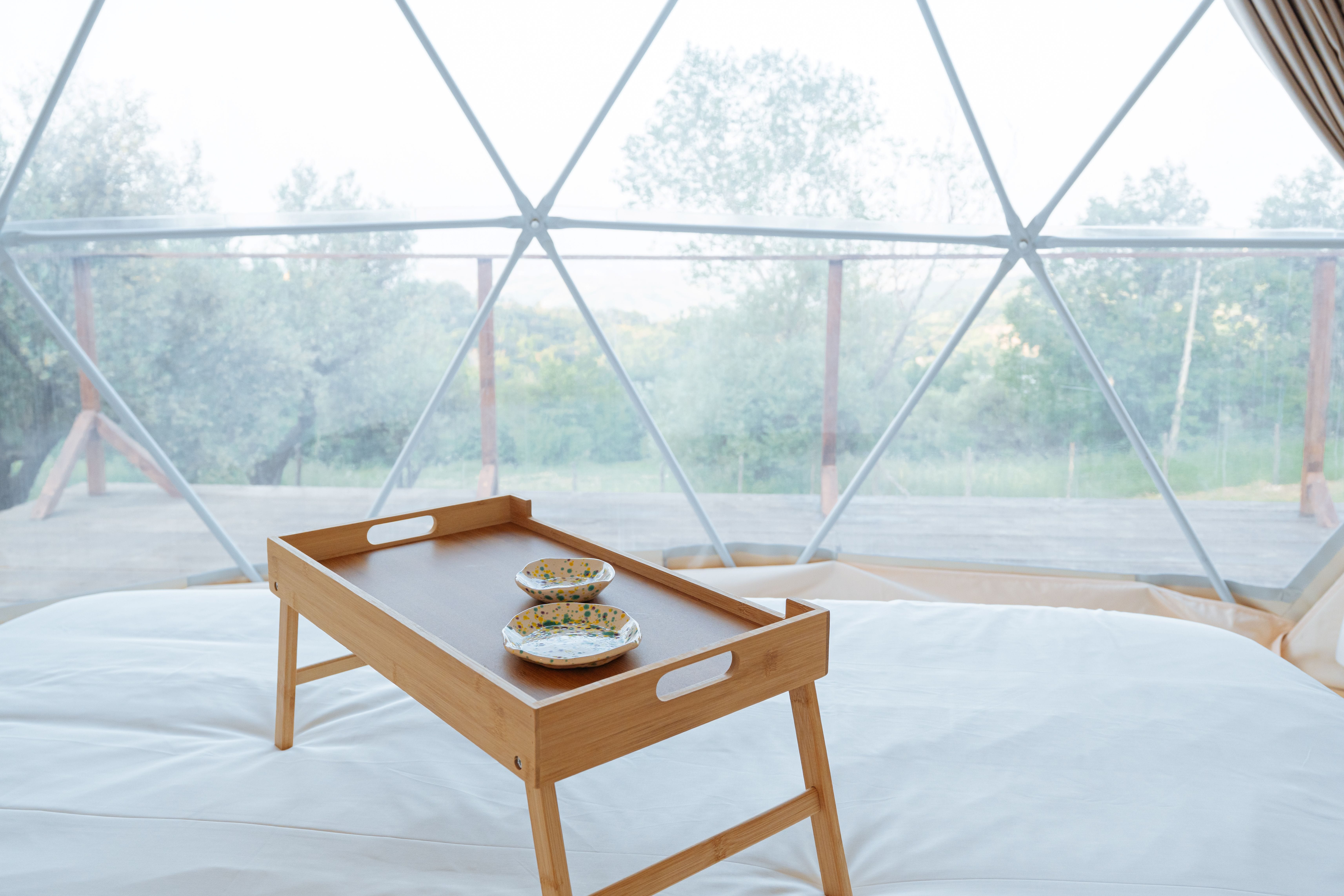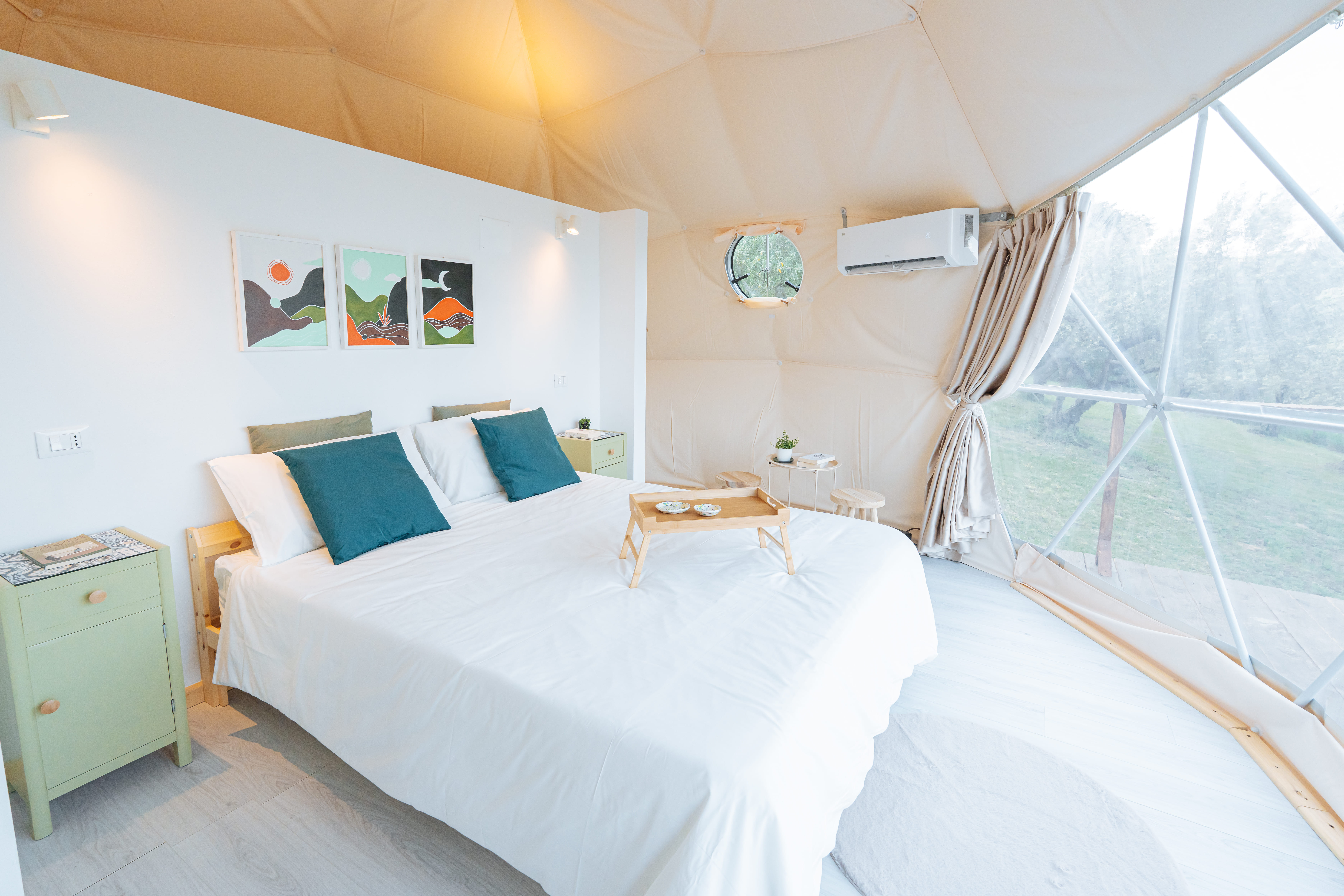 🌙 1 night in panoramic dome for 2 people ☕ Rich sweet and savoury breakfast served in room 🛋 Private bathroom and complete linen set ❄️ Air conditioning, hair dryer, bath products and slippers 🌿 Outdoor relaxation area 🅿️ Parking included 🍎 Water and fruit as welcome gift